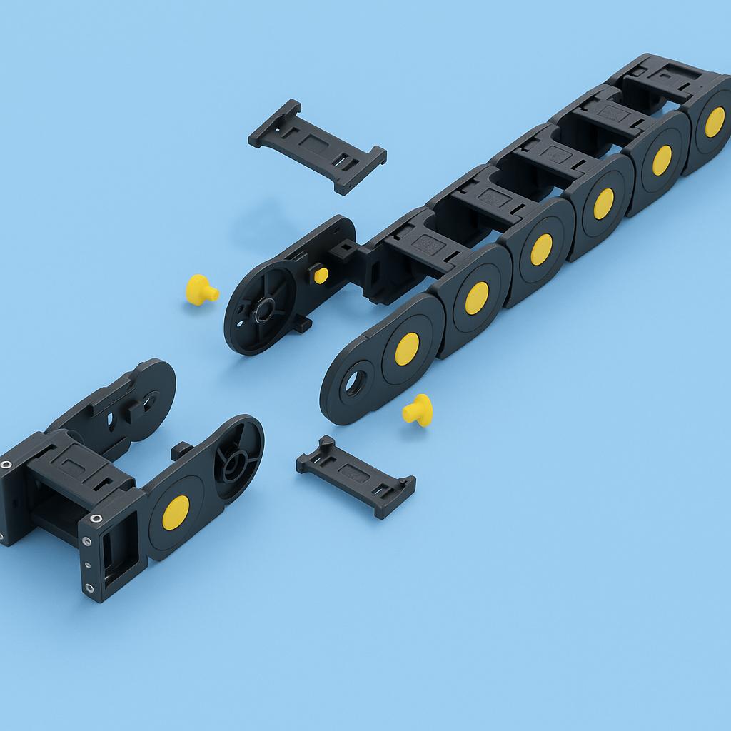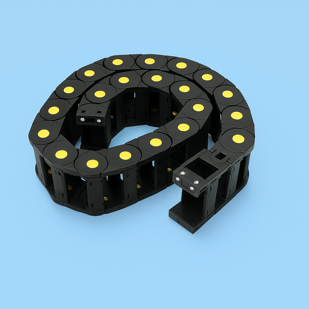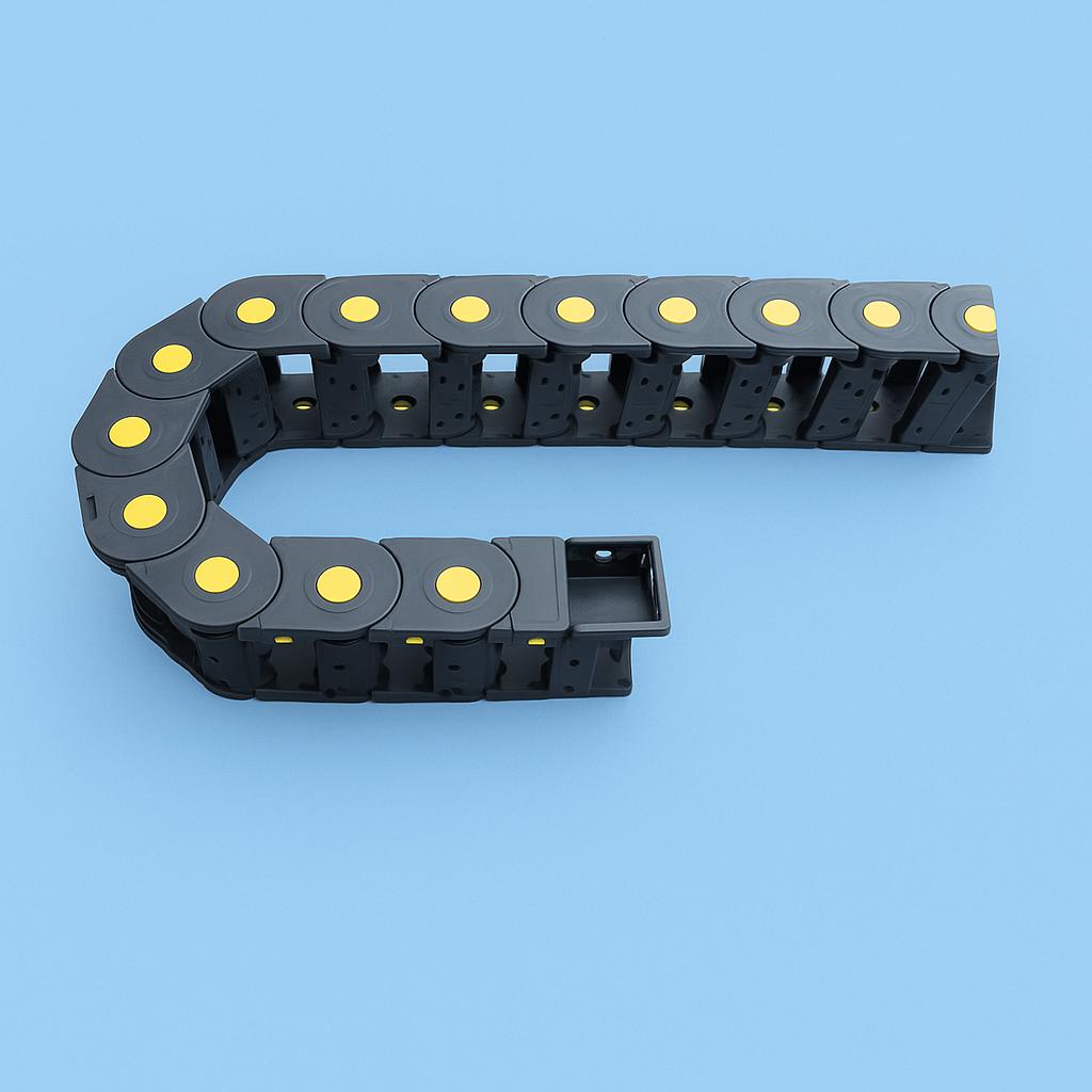 CNC transporter kabla, poznat i kao kablovski lanac, energetski lanac ili cable carrier, dimenzija 25×38 mm, namenjen je za zaštitu i vođenje kablova i creva u CNC mašinama i automatizovanim sistemima. Njegova funkcija je da obezbedi organizovano, sigurno i dugotrajno vođenje kablova uz nesmetano kretanje tokom rada mašine.