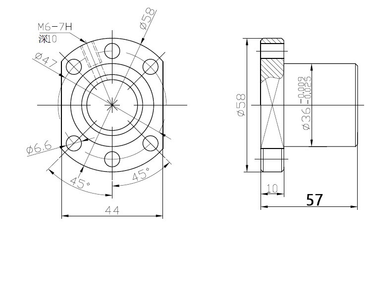Kuglična matica za kuglično navojno vreteno tip 2010 (prečnik 20 mm, korak 10 mm). Opremljena je nizom recirkulacionih kuglica koje klize po navojnim kanalima, omogućavajući brza linearna pomeranja uz minimalan otpor i bez zazora. Dizajnirana da se koristi sa vretenom 2010, pruža kombinaciju veće brzine prenosa i preciznosti pozicioniranja. Kvalitetna čelična konstrukcija matice osigurava dugotrajnost i stabilnost performansi u CNC mašinama i drugim preciznim pogonima.